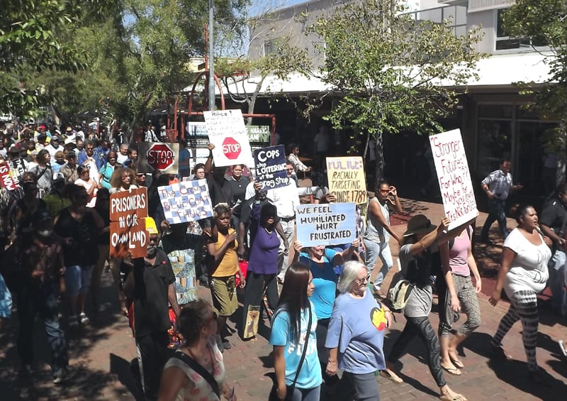 Operation Leyland has brought the racism of Stronger Futures into full public view. Police are using the skin colour of shoppers to claim a “reasonable suspicion” that they will be taking alcohol into Aboriginal camps. All Aboriginal people, regardless of where they live, are being questioned, searched and made to produce identification while police conduct background checks. Many Aboriginal speakers addressing the protest described the situation as “apartheid”.